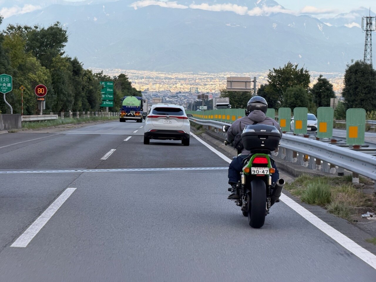 遠くにくっきりと浮かび上がる八ヶ岳を眼前に捉えつつ、まだまだ中央道を進みます。
