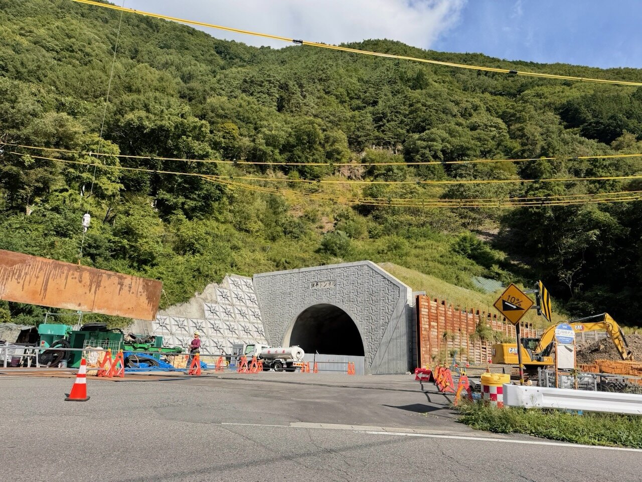 途中で目につくのは、いくつかの道路改良トンネルの工事区間。