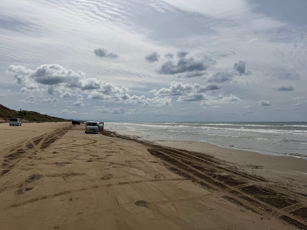 飛び石中日の平日ながら、閉鎖範囲のおかげもあってか砂浜にはそこそこの台数の車が並びます。