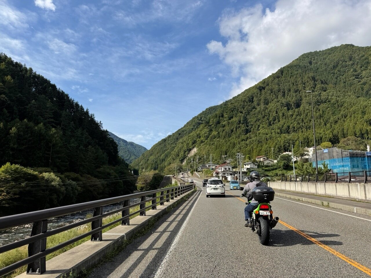 目の前に走るバイクがいつの間にかNinja1000SXに変わっていますが、途中でバイク交換をしたから。