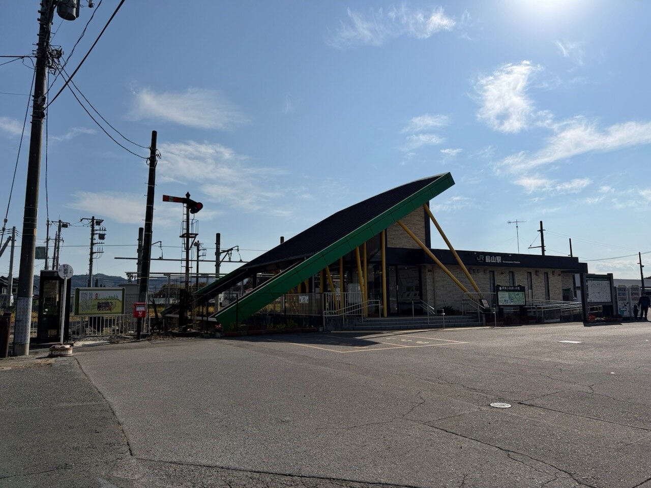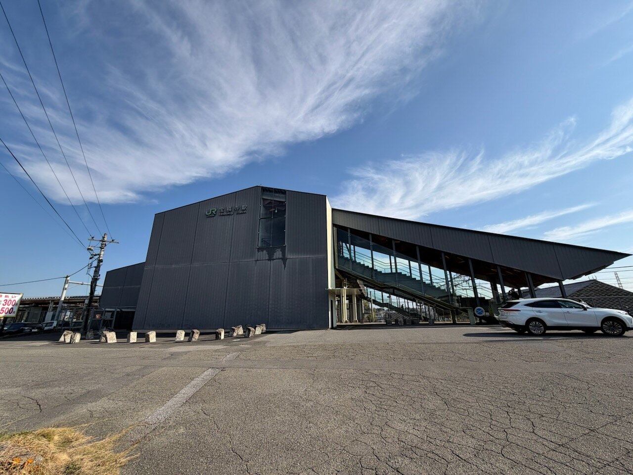 駅舎、おしゃれではありますが、メンテナンスに無駄に手間がかかりそうなやつ。