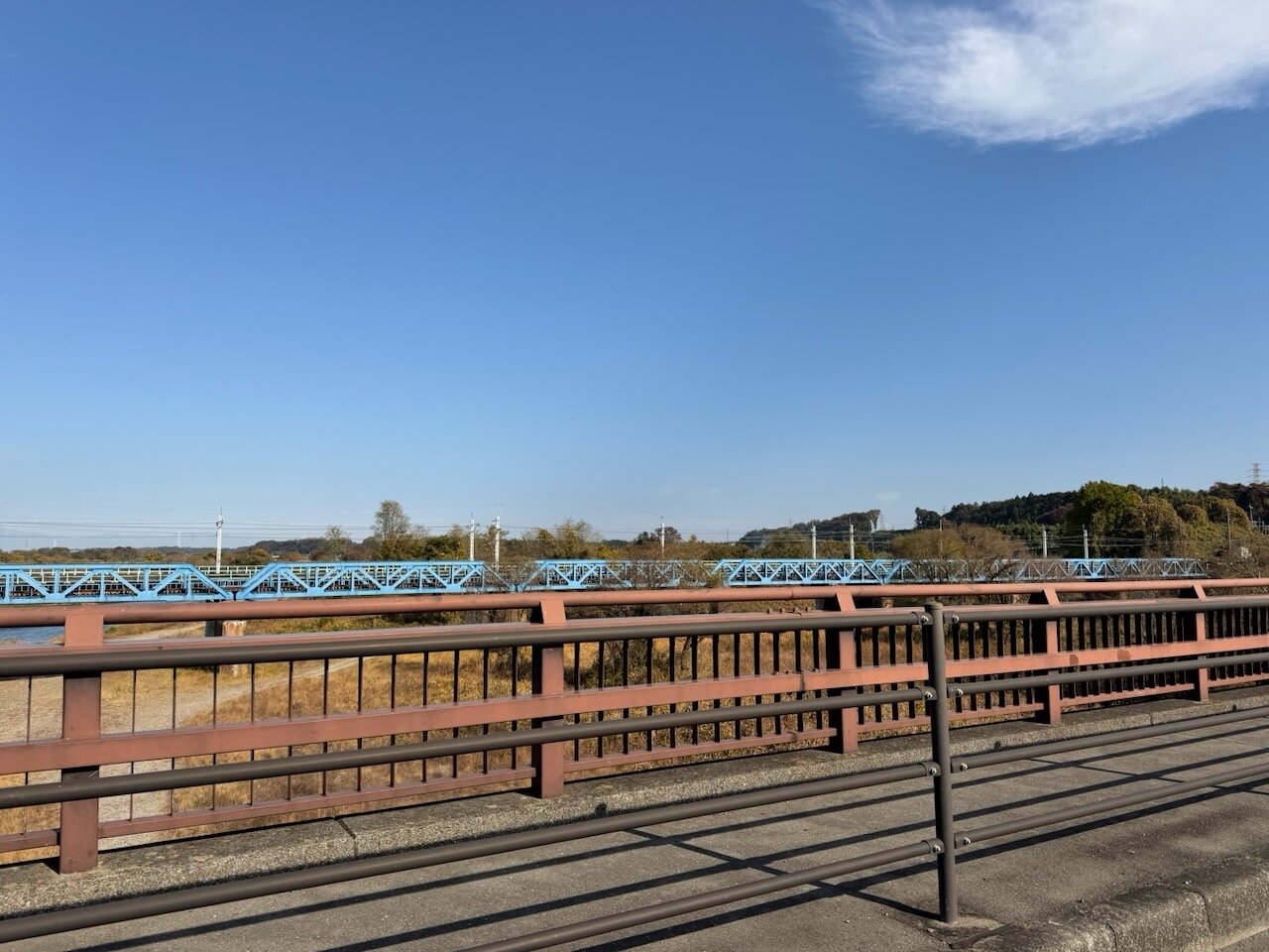 青いトラス橋が東北本線。