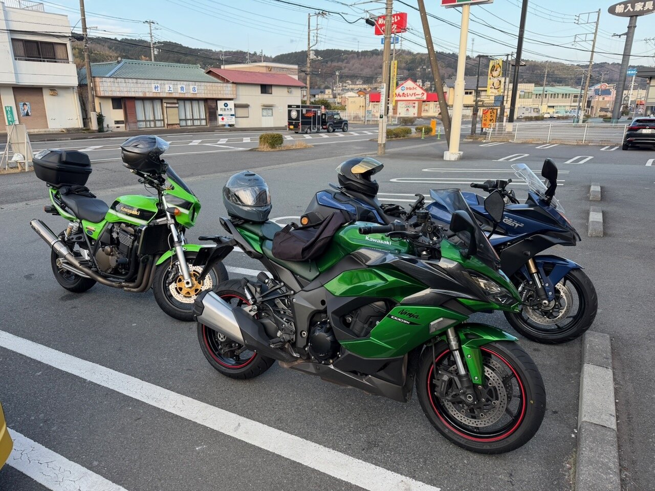 遅ればせながら、今日のメンツはZRX1200RとGSX-S1000GTと私との3人。