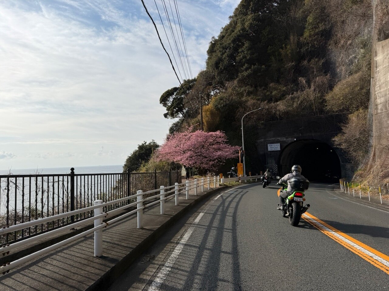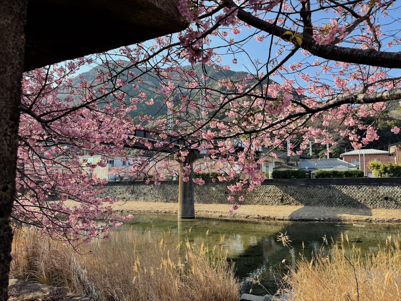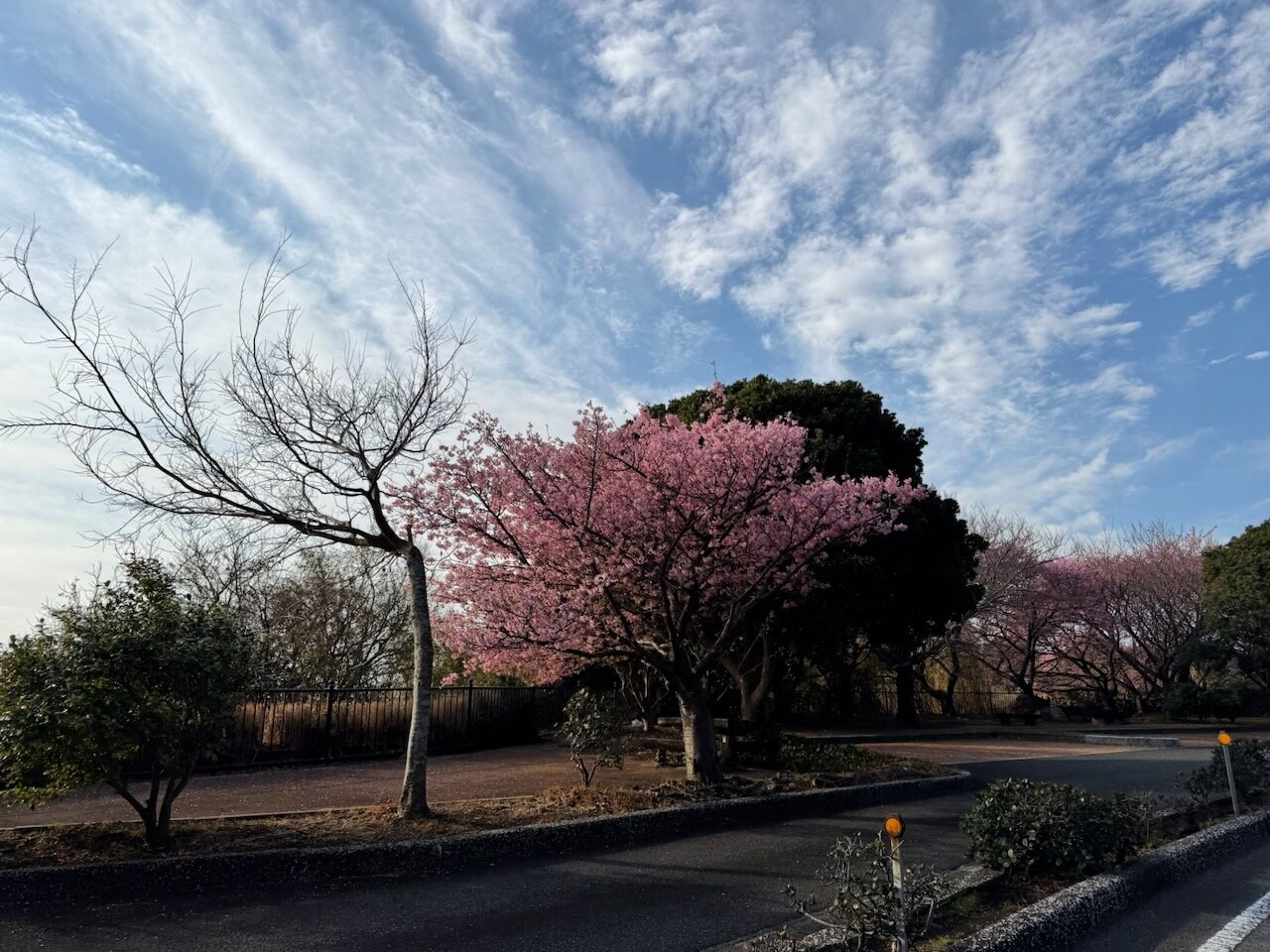 伊豆を南下するにつれ、沿道にはちらほら桃色の花をつけた桜の木が見られるようになります。