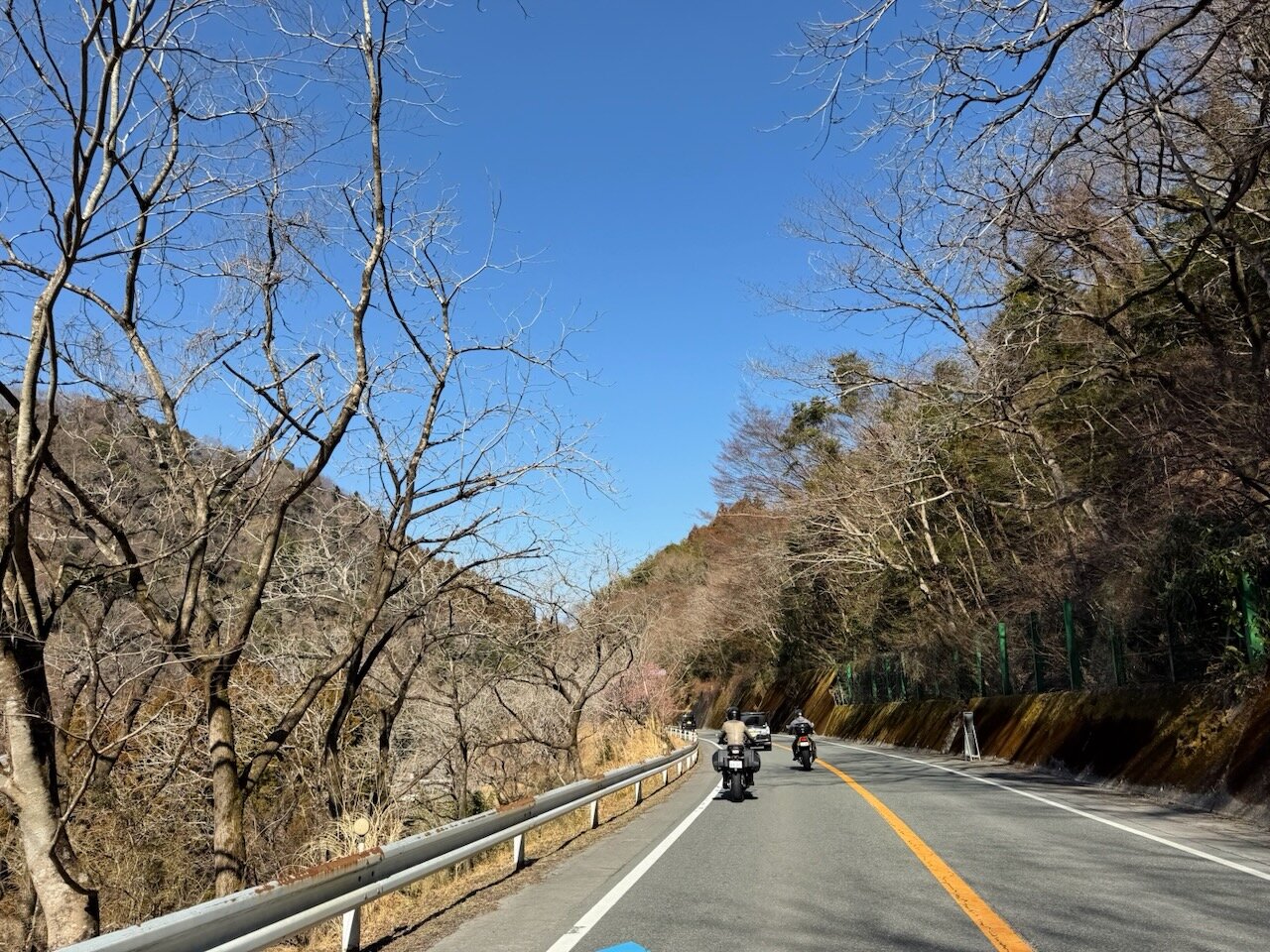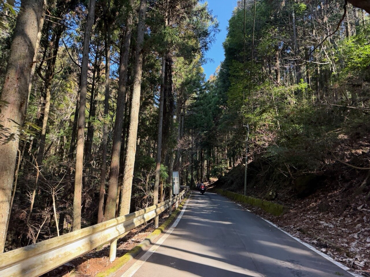 県道59号は狭めの道で、時折路面の凸凹が激しいながらも、ツイスティで楽しい道。