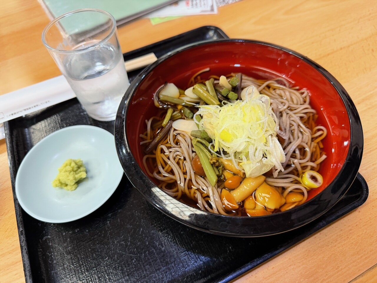 時間もまもなく正午ということで、食事も一緒に済ませようということで、山菜そばの冷を注文。