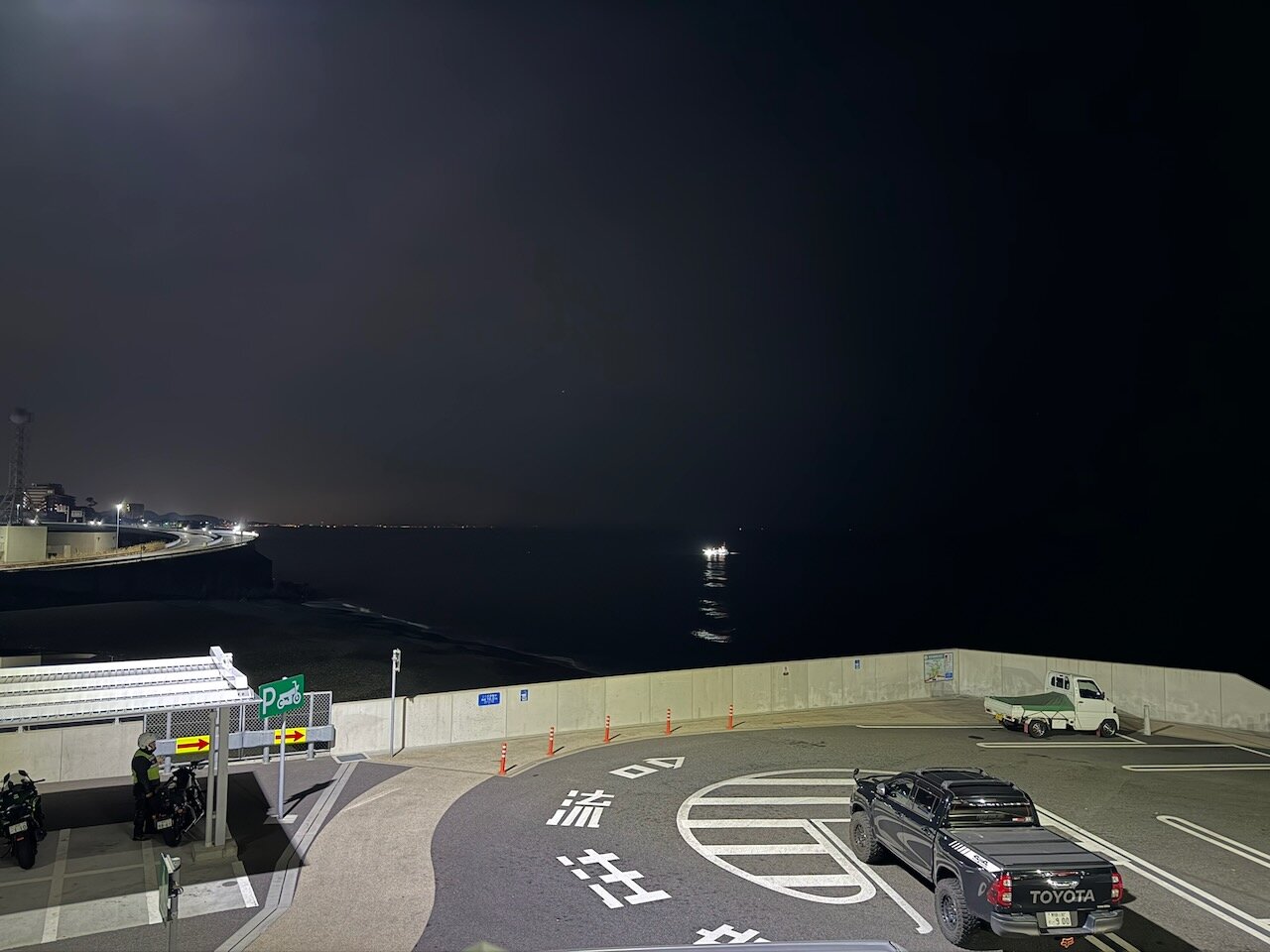 Ninja250に火を入れてバッテリーの充電がてら深夜営業の外食チェーンで腹ごしらえをし、バイクを入れ替えて下道でゆったり向かうことにします。
